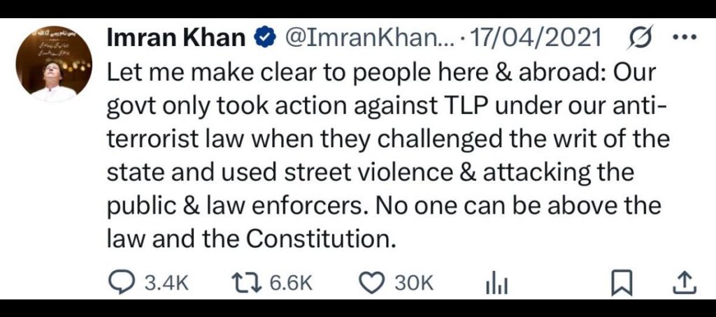 در همین چارچوب، عملیاتی که امروز در مریدکے علیه تحریک لبیک پاکستان انجام شد، بر مبنای همین اصل صورت گرفت، چرا که این گروه بار دیگر به رفتار خشونت‌آمیز و تهدیدآمیز متوسل شد